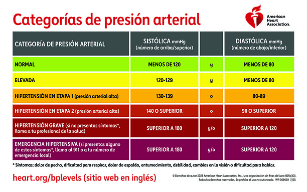 La presión arterial es la fuerza que ejerce la sangre sobre las paredes arteriales. Las arterias transportan la sangre a través de todo el cuerpo. Su presión arterial puede aumentar y disminuir a lo largo del día. Cuando su presión arterial se mantiene por encima de los valores normales, puede que sea diagnosticado con “presión arterial alta” o hipertensión.